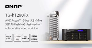QNAP TS-h1290FX: NAS Tower U.2 NVMe/SATA All-Flash đầu tiên, đáp ứng các môi trường làm việc cộng tác 25GbE