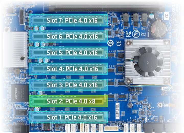 Dòng MC62-G41 cũng khai thác tốt lợi thế từ 128 lane PCIe 4.0 của AMD Ryzen Threadrippper PRO thông qua 6 khe cắm PCIe 4.0 x16 cùng 1 khe PCIe 4.0 giúp tối ưu hóa cho các ứng dụng – phần mềm cần kết nối đa card đồ họa, đa thiết bị