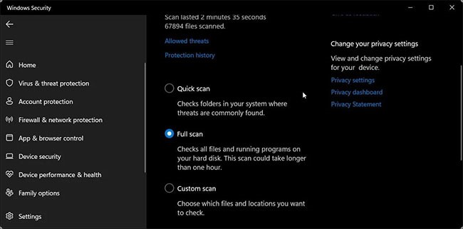 Quá trình quét toàn bộ thường mất nhiều thời gian để hoàn thành tùy thuộc vào lượng dữ liệu được lưu trữ trên ổ cứng.