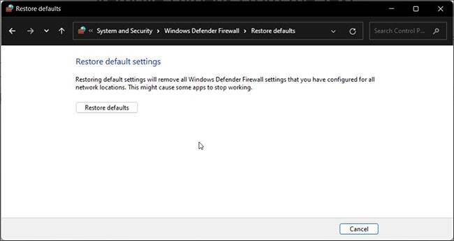 Khôi phục cài đặt Windows Defender Firewall về mặc định