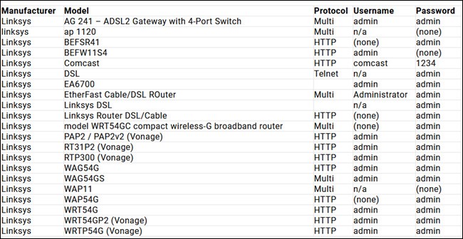 - Truy cập RouterPasswords.com: Nếu các các trên không hiệu quả, bạn có thể tìm thấy một danh sách khá đầy đủ về tên người dùng và mật khẩu mặc định cho các bộ định tuyến khác nhau trên RouterPasswords.com.
