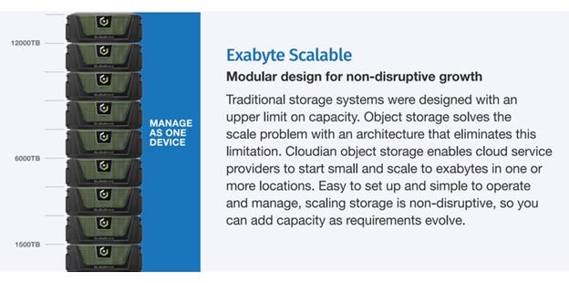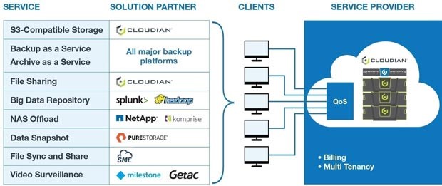 Cloudian Object Storage cung cấp một nhóm lưu trữ linh hoạt, có thể mở rộng cho bất kỳ ứng dụng nào tương thích với S3. Đối với các nhà cung cấp dịch vụ đám mây, điều này cho phép một danh mục các dịch vụ giá trị cao, bao gồm Storage-as-a-Service (STaaS), Backup-as-a-Service (BaaS), Archive-as-a-Service (AaaS), Compliance-as-a-Service, Disaster Recovery-as-a-Service (DRaaS) và Big Data-as-a-Service (BDaaS). Chức năng lưu trữ đám mây và đa người thuê cung cấp cho các nhà cung cấp dịch vụ khả năng giảm chi phí lưu trữ, cung cấp các dịch vụ ‘sẵn sàng đem về doanh thu’ và tương thích với S3 kịp thời hơn, cải thiện khả năng quản lý rủi ro và giảm tải đáng kể các nguồn lực nội bộ khác của họ.