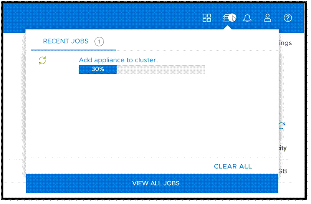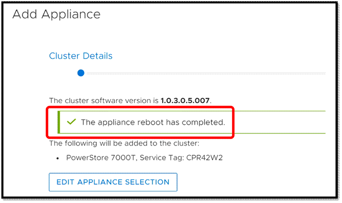 Chúng tôi được yêu cầu cung cấp ba địa chỉ IP cho thiết bị mới; một cho quản lý và hai cho mỗi node trong thiết bị. Sau khi mạng được xác thực, thiết bị đã được thêm vào cụm. Trong khi thiết bị được thêm vào, chúng tôi có thể theo dõi tiến trình của nó.