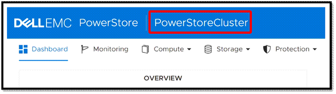 Phần trên cùng của Trình quản lý PowerStore hiện đã phản ánh sự thay đổi tên.