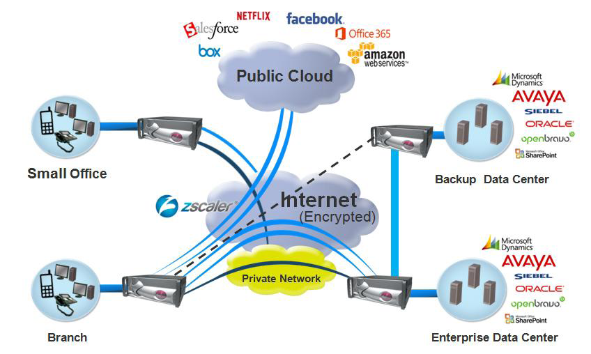 Ngày nay, một thách thức về mối quan tâm tối ưu hóa hiệu suất của mạng WAN là khi các ứng dụng đang hoạt động, chúng không còn được thiết lập chỉ tại một địa điểm cố định như trung tâm dữ liệu hay trụ sở chính của công ty, mà được thiết kế dạng “hub-and-spoke” hay giao thức dạng sao (Star Topology), giúp dễ dàng truy cập. Do vậy, các ứng dụng đang có xu hướng dựa trên công nghệ điện toán đám mây, chuyển sang cung cấp dịch vụ trên nền web. Việc này dẫn đến sự xung đột với nguyên tắc bảo mật truyền thống, khi mà mọi kết nối của người dùng đều được giám sát qua cổng bảo mật trung tâm trước khi kết nối đến ứng dụng trên web.