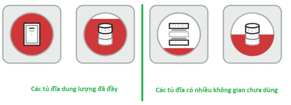 Trong một doanh nghiệp có nhiều phòng ban, nhiều đơn vị thì sự phức tạp này càng gia tăng vì cùng một lúc nhà quản trị phải quản lý nhiều hệ thống khác nhau. Có những thời điểm tủ đĩa này dung lượng đã bị đầy, trong khi tủ lưu trữ khác thì dung lượng còn trống rất nhiều. Khi dung lượng không được cân bằng giữa các tủ đĩa sẽ dẫn đến một tủ đĩa nhanh chóng bị lấp đầy và không còn khả năng cung cấp dịch vụ nữa. Rủi ro cho hệ thống này sẽ cao lên do cường độ hoạt động tăng lên đáng kể.