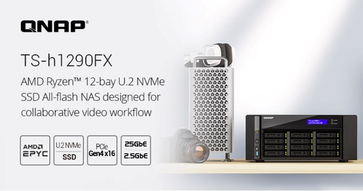 Đài Bắc, Đài Loan, ngày 4 tháng 7 năm 2022 – QNAP® Systems, Inc., nhà sáng tạo giải pháp tính toán, mạng và lưu trữ hàng đầu, hôm nay đã ra mắt TS-h1290FX NAS. Mang đến thiết bị NAS all-flash PCIe 4.0 và U.2 NVMe/SATA đầu tiên của mình ở dạng Tower, TS-h1290FX vượt trội trong các môi trường làm việc khắt khe nhất như các quy trình làm việc cộng tác video độ phân giải cao. Với bộ vi xử lý AMD EPYC™ 7232P/7252 (8-core) hoặc 7302P (16-core), tích hợp kết nối 25GbE và 10GbE, PCIe Gen 4 cho mở rộng và dung lượng lưu trữ lên đến petabyte, TS-h1290FX cung cấp lên đến 816K/318K iSCSI 4K IOPS đọc/ghi ngẫu nhiên để giải quyết các ứng dụng chuyên sâu về dữ liệu và nhạy cảm với độ trễ, chẳng hạn như truyền file phương tiện lớn, chỉnh sửa phương tiện 4K/8K thời gian thực và các ứng dụng ảo hóa.