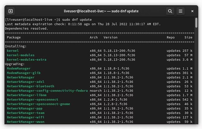 Để cài đặt các bản cập nhật hệ thống bằng DNF, hãy chạy: