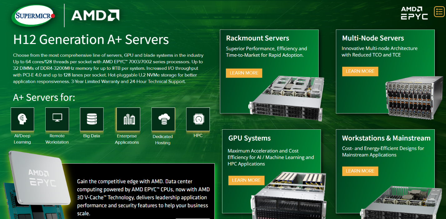Supermicro 1024US-TRT là máy chủ 1U thuộc dòng A + Ultra của Supermicro lý tưởng cho các tổ chức cần giải pháp hướng đến hiệu suất vượt trội trong các trường hợp sử dụng máy tính mật độ cao. Cùng với các tùy chọn mạng mở rộng, 1024US-TRT có bo mạch chủ H12DSU-iN bên trong khung SC819UTS-R1K02P-A, được nổi bật với khả năng hỗ trợ ổ cắm kép cho bộ vi xử lý dòng AMD EPYC (Milan) hiệu suất cực cao, lên đến 8TB ECC DDR4 3200MHz SDRAM sử dụng 32 khe DIMM và khe cắm mở rộng PCI Gen4 tốc độ cao.