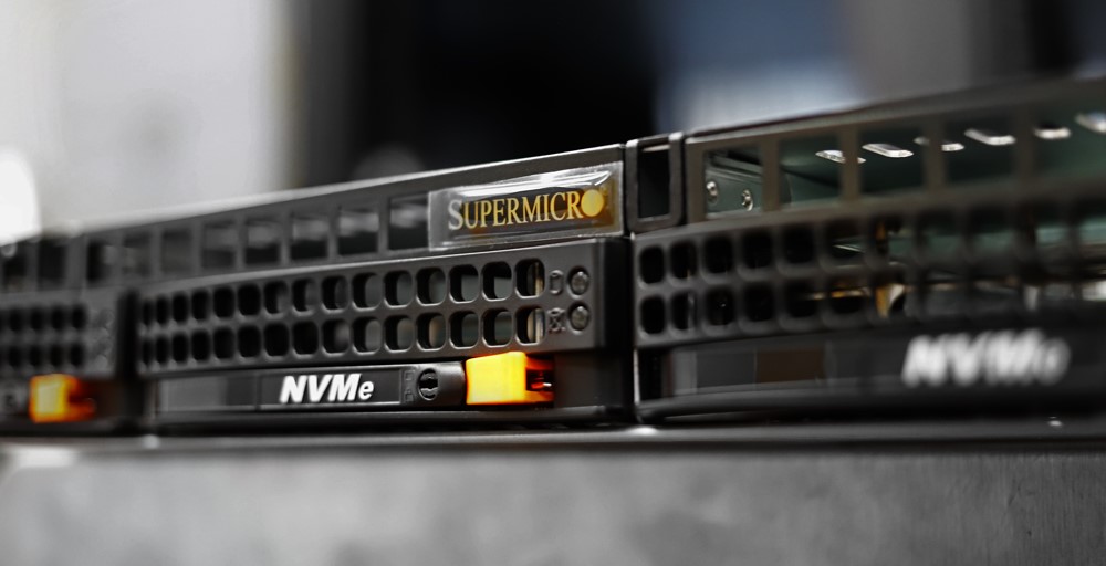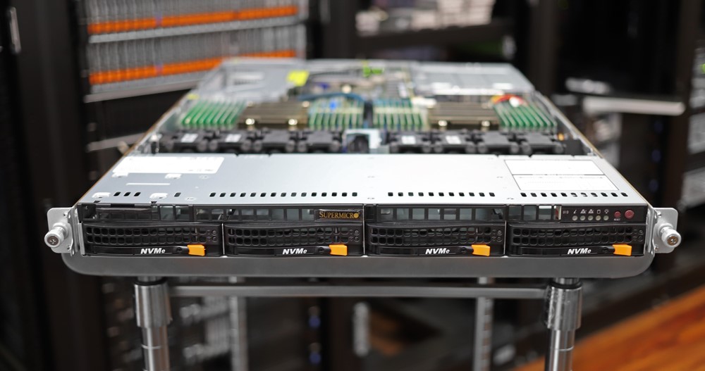 Supermicro tiếp tục với sự kết hợp độc đáo giữa các khoang 3,5 inch và NVMe để mang đến cho người dùng sự linh hoạt nhiều nhất có thể cho việc xây dựng hệ thống. Cấu hình 4-bay cụ thể này giả định rằng bản thân máy chủ phần lớn sẽ tận dụng bộ nhớ được chia sẻ để mang lại cho các lõi AMD của nó. Điều đó nói rằng, nếu tốc độ kết nối của CPU là một vấn đề, thì các khoang có thể tận dụng một lượng dữ liệu tốt với các ổ SSD NVMe dung lượng cao hoặc ổ cứng HDD.