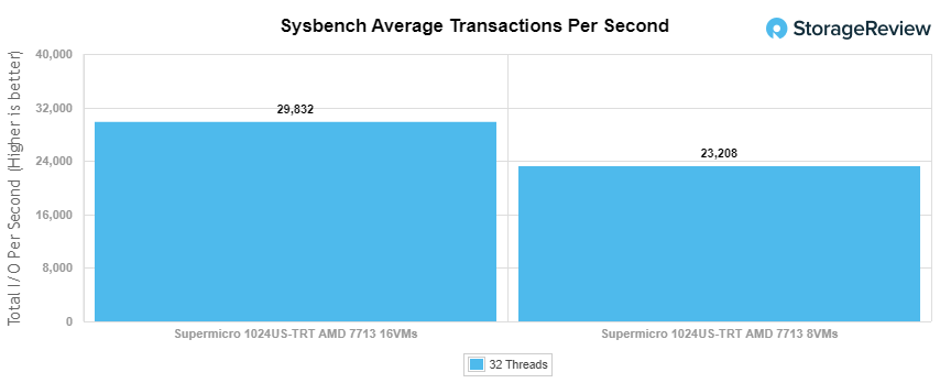 Với Sysbench OLTP, chúng tôi đã ghi lại điểm tổng hợp là 23.208 TPS cho 8VM và 29.832TPS cho 16VM.