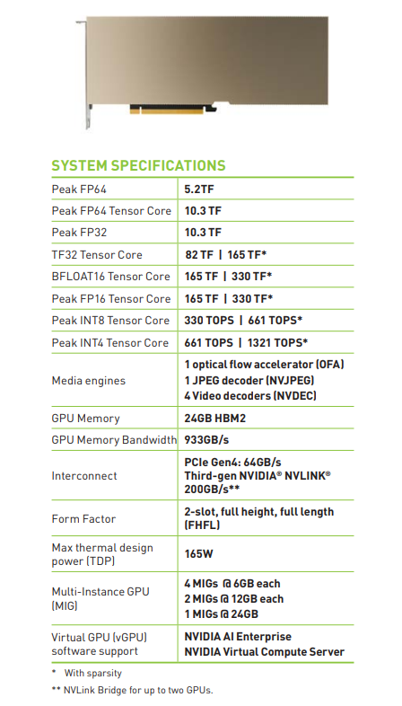 x16 PCIe Gen4 2 Slot FHFL 1 NVLink bridge |