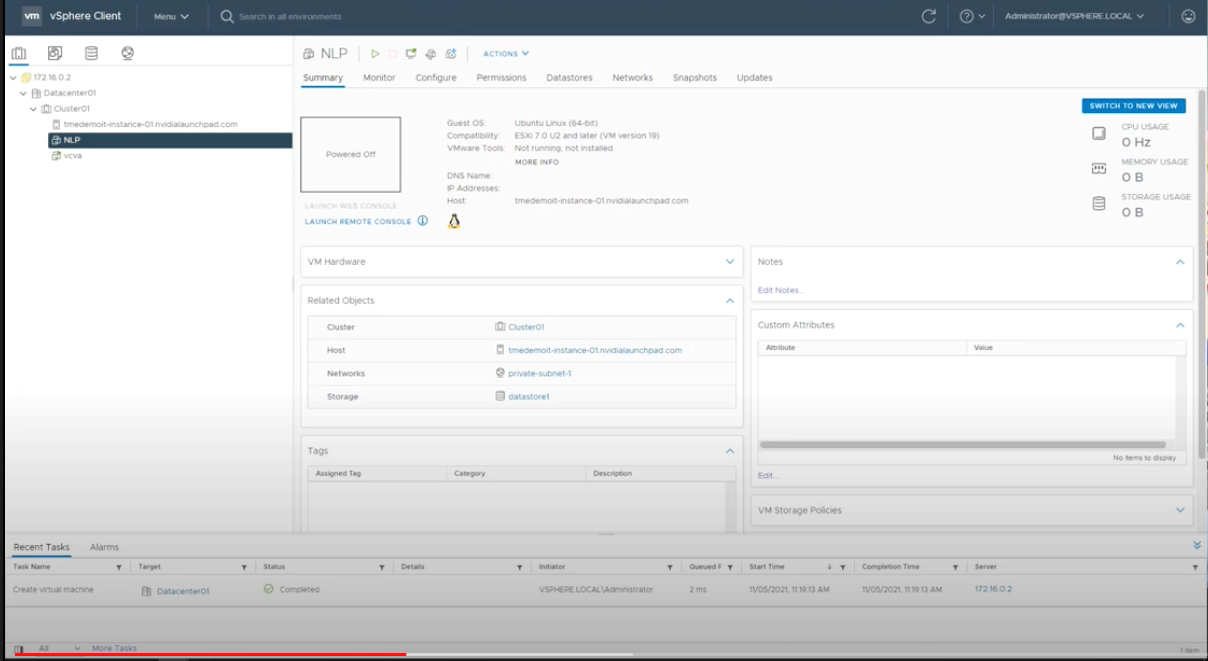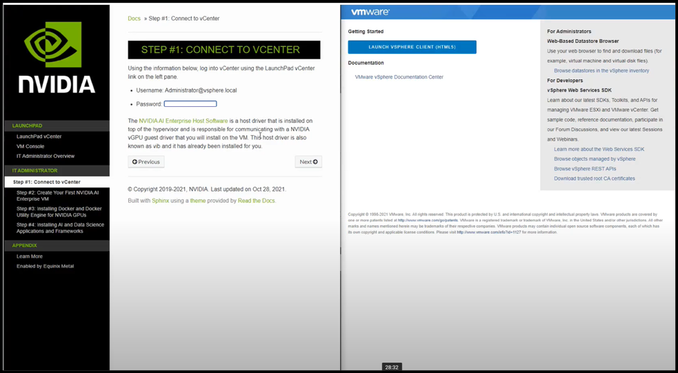 Các phòng thí nghiệm đã được cài đặt sẵn vSphere với quyền truy cập vào một ứng dụng khách vSphere từ URL do NVIDIA cung cấp.