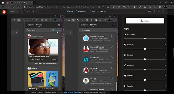 Microsoft đã không ít lần bày tỏ tham vọng muốn biến Edge trở thành một đối trọng xứng tầm của Chrome trong thị trường trình duyệt web. Việc Edge nhanh chóng vượt mặt Firefox để trở thành nền tảng trình duyệt phổ biến thứ 2 thế giới, với thị phần 2 chữ số sau thời gian ngắn ra mắt đã phần nào cho thấy công ty Redmond đang đi đúng hướng với kế hoạch bổ sung thêm nhiều công cụ, tiện ích (và thậm chí cả trò chơi) vào trình duyệt. Bên cạnh những sự bổ sung đã được đón nhận tích cực như máy tính tích hợp, bộ chuyển đổi đơn vị, hay trình kiểm tra tốc độ internet, Microsoft còn chuẩn bị đưa ứng dụng Windows Photos vào Edge. Các bản cập nhật Edge Canary gần đây đã giới thiệu bộ công cụ chỉnh sửa ảnh tích hợp dựa trên Windows Photos vào trình duyệt, và lập tức thu hút được nhiều sự quan tâm từ cộng đồng người dùng nhờ sự tiện lợi mà nó mang lại.