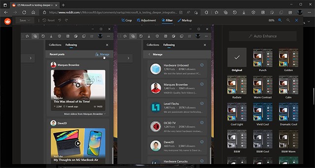Microsoft đang làm việc để thêm nhiều công cụ hơn (và thậm chí cả trò chơi) vào trình duyệt jack-of-all-trades hiện đã hơi phình to của mình. Bên cạnh máy tính tích hợp, bộ chuyển đổi đơn vị và trình kiểm tra tốc độ, các nhà phát triển tại Microsoft còn chuẩn bị đưa các ứng dụng Windows Photos vào Edge. Các bản cập nhật Edge Canary gần đây nhất đã giới thiệu trình chỉnh sửa ảnh tích hợp cho trình duyệt của Microsoft.